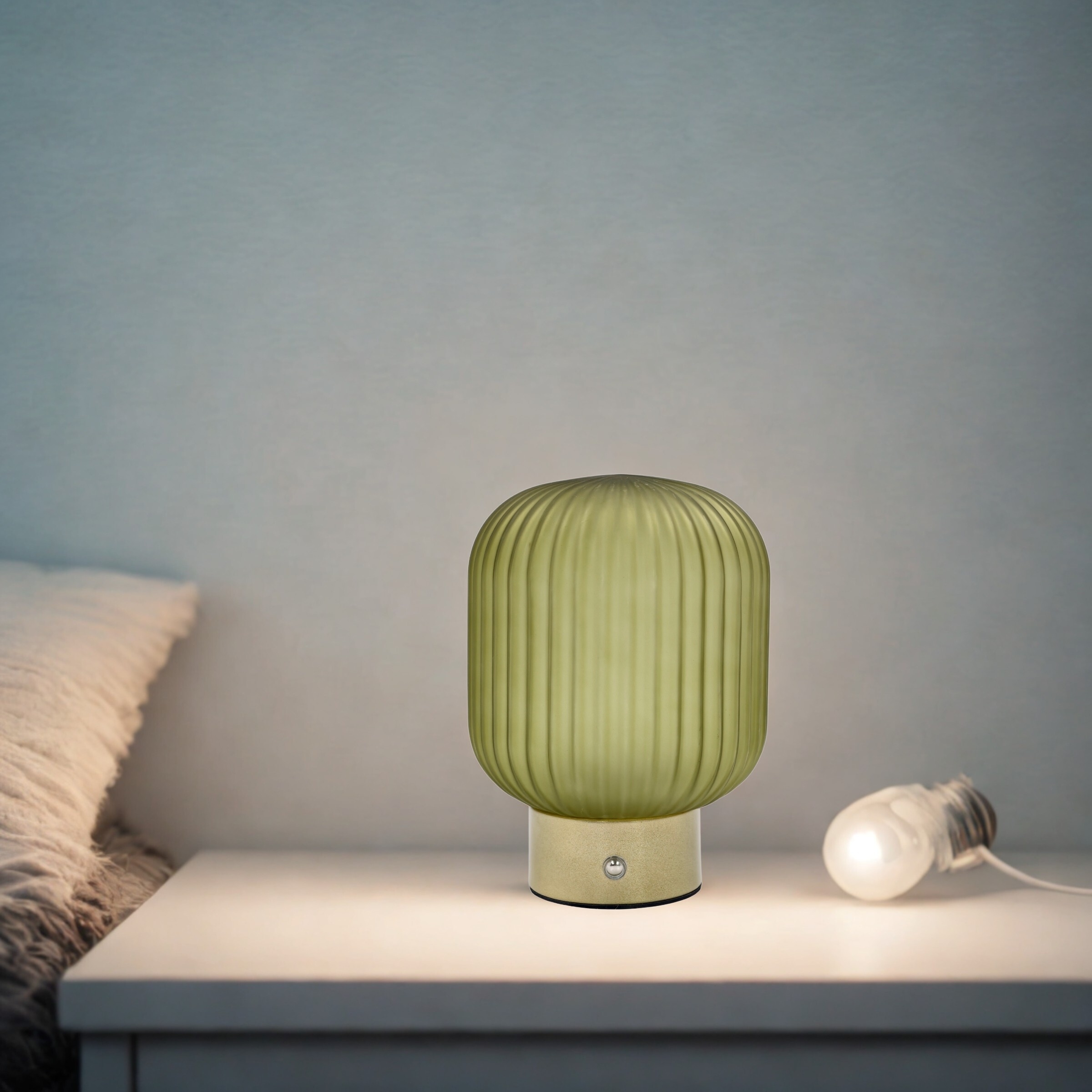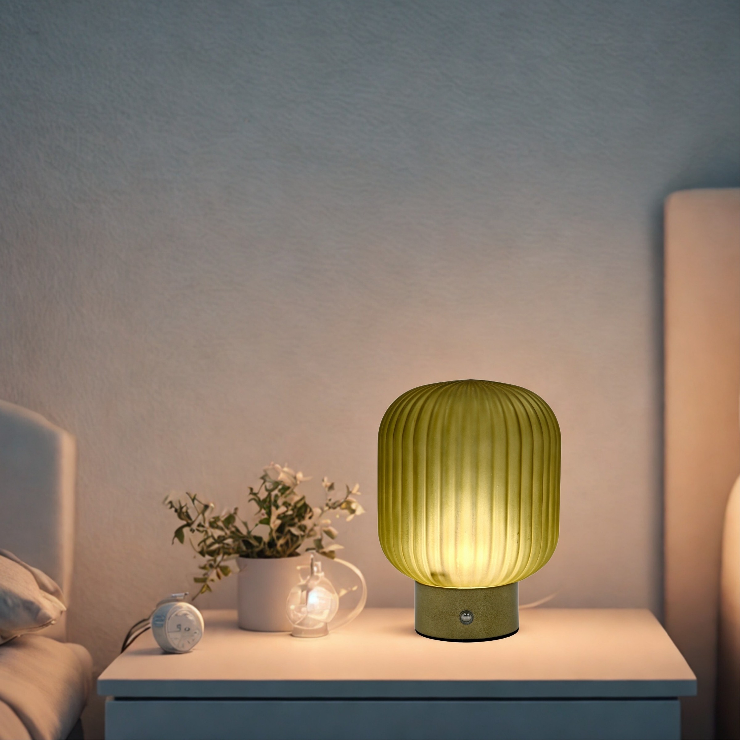 Material: Glass shade, Iron base, LED Component
