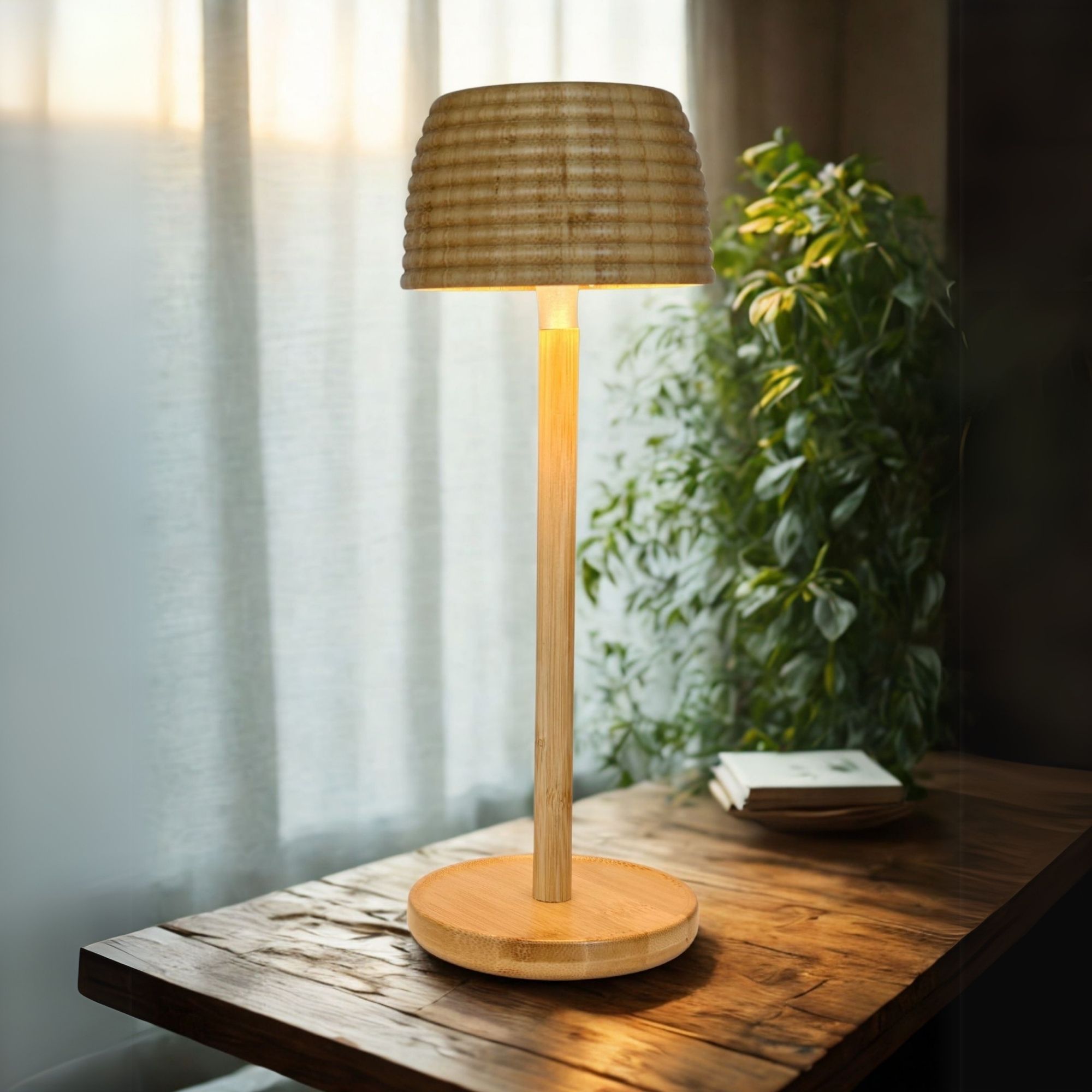 Material:Bamboo+Plastic shade,Bamboo rod,Bamboo base, LED Component
